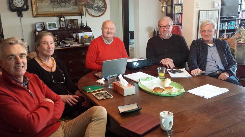 Hierondernhet comite in bedrijf. Van links naar rechts John van Loon, Paulien Bok, Peter Beij, Hans Ladan en Kees Griffioen.