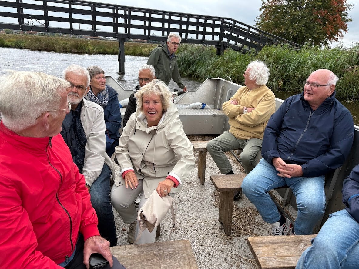 John leidde ons bekwaam in een platte schuit met electro motor door de sloten van de Kalverpolder en vertelde honderd uit over de werkzaamheden die zij wekelijks met een grote groep vrijwilligers uitvoeren.